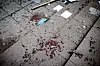 Det første som møter ham er en kvinne, liggende på bakken med blødende hals. Hun får førstehjelp av to sivile, mens en del forskrekkede mennesker har samlet seg rundt dem.