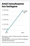 I en tidligere versjon av denne saken lå det inne en serie grafer som skaper et feil bilde av utviklingen i antall konsultasjoner hos fastlege, sykemeldinger og andel uføretrygdede. Denne er nå fjernet og vil bli rettet.
