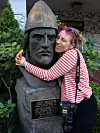 Fotograf Ingerid Jordal klemmer statuen til Leiv Erikson.Foto: Ingerid Jordal
