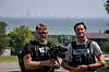 Aage Aune (t.v.) med TV 2-kollega Kjetil Iden i Nikopol, med atomkraftverket i Enerhodar i bakgrunnen.Foto: Oleksandr Techynskiy / TV 2