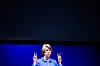 Elisabeth Bullimer, byråsjef på Washington-kontoret til New York Times, snakker til forsamlingen på Skup-konferansen i Tønsberg. Foto: Eskil Wie Furunes