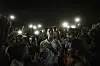 Vinnerbildet viser en demonstrant i Sudan som resiterer et dikt mens meddemonstranter står rundt ham og lyser opp den mørke himmelen med lys fra mobiltelefoner.