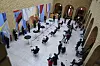 Et eksempel på hvordan Aftenposten jobber nå. Fotograf Olav Olsen fant en ny vinkel som viser avstanden mellom journalister, fotografer og folkevalgte på Stortinget, samtidig som han selv holdt avstand.Foto: Olav Olsen / Aftenposten