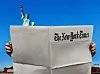 Tegner Ahmed Falah kom fra Irak til Norge i fjor etter å ha blitt truet på livet for en karikaturtegning. Tegningen er en kommentar til fjorårets beslutning i New York Times om å slutte med politiske satiretegninger i sin internasjonale utgave.