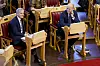 Statsminister Jonas Gahr Støre og finansminister Trygve Slagsvold Vedum under framleggelsen av regjeringens forslag til endringer i statsbudsjettet for Stortinget.Foto: Stian Lysberg Solum / NTB