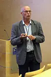 – I dag er det sluttpakkene som er hovedtema, sier Berg med Journalisten.no på slep inn til møtet i det moderne auditoriet.