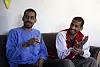 Alexanda Amon Kotey (t.v.) og El Shafee Elsheikh, som anklages å ha vært to av i alt fire medlemmer av IS-cellen «The Beatles». Her er det fotograferte under et intervju med AP etter at de ble tatt til fange.