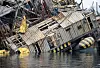 Fredag er det 40 år siden boligplattformen «Alexander L. Kielland» kantret på Ekofiskfeltet i Nordsjøen. Bildet er fra 1983 da plattformen ble forsøkt snudd.