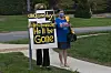 To kvinner demonstrerer mot president Donald Trump utenfor en av hans golfklubber i Sterling. Bildet er tatt for en drøy uke siden, før han fikk påvist koronasmitte.