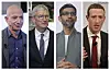 De fire mektige topplederne Jeff Bezos (Amazon), Tim Cook (Apple), Sundar Pichai (Google) og Mark Zuckerberg (Facebook) skal forklare seg for Kongressen onsdag.