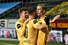 Det er flere aktører som har lagt inn bud på norsk fotball. Her feirer Bodø/Glimt-trioen Alfons Sampsted, Philip Zinckernagel og Ola Solbakken scoring mot Rosenborg sist helg.