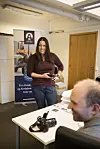 – Utfordringen ligger jo i avstandene, når det er noe som plutselig skjer, sier redaktør Liv Maren Mæhre Vold. Her sammen med journalist Lars Vingelsgård.Foto: Nils Martin Silvola