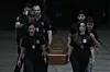 Medlemmer av det føderale brasilianske politiet bærer en kiste med en av de to som er funnet døde i et avsidesliggende område i Amazonas.
