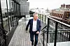 Konsernsjef Are Stokstad står på toppen av Amedia-bygget i Akersgata i sentrum av Oslo.