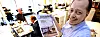 Nyhetsredaktøren med spesialutgaven av avisen. Foto: Fredriksstad Blad