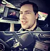 Are Tågvold Flaten har spilt inn podkast fra førersetet i en leiebil, på en amerikansk parkeringsplass, en rekke ganger.Foto: Ampolitikk Instagram