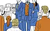 På et allmøte i DN sent 2017 tok en ansatt ordet om arbeidsmiljøet, og det personen beskrev som en fryktkultur i DN. Et halvår senere meldte «Julie» ifra til sjefredaktøren om en avdelingsleder og det hun kaller «taushetskultur» i ei DN-avdeling.Illustrasjon: Oda Valle