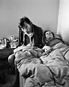 – Etter hvert ville Helge også gå og legge seg, og satte seg på sengekanten. Han tok hånda til Anniken og jeg sa «bare sitt der litt og se på meg». Det er jo et portrett, så jeg ba ham om å sitte stille. Det fine med Helge er at han er veldig tålmodig.