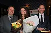 Riksmålsforbundet hedret fra venstre Anders Borgen Werring med Lytterprisen, Tonje Steinsland med TV-prisen og Knut Olav Åmås med Gullpennen. Foto: Stig Michaelsen/Riksmålsforbundet