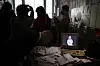 Journalister i Novaja Gazeta samler seg på det som var kontoret til Anna Politkovskaja, og som nå fungerer som et minnerom. På PC-skjermen er det et portrett av henne.Foto: Aleksandr Zemljanitsjenko / AP / NTB