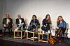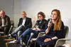 Debatt om nyhetsfotografiet i Årets bilde. Fra venstre: VG-fotograf Tore Kristiansen, leder i Pressefotografenes klubb (PK), Jarle Aasland, redaktør og leder for visuell kommunikasjon i NTB, Christina Dorthellinger Nygaard, fotojournalist og jurymedlem i årets fotojury, Line Ørnes Søndergaard, og fotosjef i VG, Annemor Larsen. Foto: Kristine Lindebø