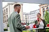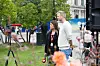 Dagbladets Julie Tran tar imot spørsmål fra tilskuere. Her står hun med Frode. Han er ungdomskolelærer og har med seg åttendeklassinger fra Frydenberg skole.Foto: Morgane Fauconnier