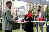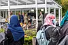 Frem til valgdagen kan forbipasserende se Dagbladets direktesendinger av Valgboden. Her har det samlet seg flere familier og skoleklasser.Foto: Morgane Fauconnier