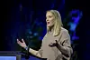 Unge Høyre-leder Sandra Bruflot på talerstolen under Høyres landsmøte på Gardermoen fredag.