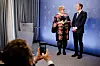 Kulturminister Trine Skei Grande fikk i dag overlevert utredningen med lovforslag fra arkivlovutvalget, her ved leder Christian Reusch. Utkastet til ny lov om samfunnsdokumentasjon og arkiver, er ment å avløse arkivloven fra 1999. Foto: Eskil Wie Furunes