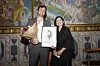 Prisvinner Sindre Leganger sammen med juryleder og kulturredaktør i Dagbladet, Sigrid Hvidsten.