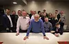 Børre Arntzen sammen med sjefredaktør Jan-Eirik Hanssen og staben i Avisa Nordland. Foto: Tom Melby/Avisa Nordland