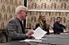 Gull og Gråstein skal være Østlandets journalistfaglige konferanse, men blir ikke avholdt i 2025. Her fra prisutdeling i 2021, der Martin Holterhuset (t.v.) mottok pris til Romerikes Blad fra Thomas Frigård i Gull og gråstein-komiteen.