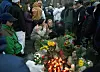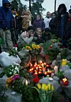 «15 år gamle Benjamin Labaran Hermansen ble stukket i hjel med kniv fredag kveld. Mange av den drepte 15-åringens venner samlet seg ved åstedet på Holmlia lørdag formiddag», er bildeteksten på bildene Erlend Aas tok lørdag 27. februar 2001.Foto: Erlend Aas / NTB