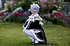 Linh-Chi Nguyen (24) er kledd ut som Rem, en figur fra en japansk tegneserie. Hun driver med cosplay. Når Nerbø treffer henne, tar hun bilder med en venn rundt i byen. Foto: Odd E. Nerbø