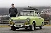 Ole Jakob Nilsen (24) satt i sin grønne trabant og ventet på grønt lys, da Nerbø oppdaget han. Han løp over veien og ba sjåføren svinge av, han måtte snakke med ham om bilen. Foto: Odd E. Nerbø