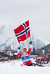 Norges Therese Johaug jubler etter å ha vunnet kvinnenes 30 km under ski-VM i Seefeld, Østerrike.Foto: Joel Marklund, Bildbyrån