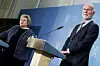 Statsminister Erna Solberg (H) og helsedirektør Bjørn Guldvog under onsdagens pressekonferanse om gjenåpningen av Norge.Foto: Berit Roald / NTB