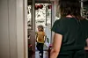 Benjamin setter seg på fanget til pappa Torkil Torsvik. Han er spent på hvordan det blir å gå i barnehage i et annet land.Foto: Marte Vike Arnesen