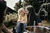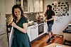 Eldstemann har takket for maten og dratt til sitt, og mens de to minste hopper på trampolina, rydder Torsvik og Nordby av bordet.