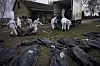 Bildene av lik som lå strødd i gatene etter at Russland trakk seg ut av byen, vakte stor internasjonal oppsikt og bred fordømmelse.
