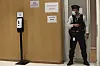 En politimann står vakt utenfor rettssalen i Paris der rettssaken mot flere som sto tiltalt for medvirkning til angrepene mot Charlie Hebdo og en jødisk dagligvarebutikk har funnet sted.