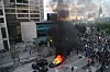 Demonstrantene har også satt fyr på det amerikanske flagget utenfor CNN-hovedkvarteret og knust vinduene til inngangspartiet.
