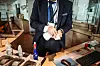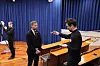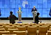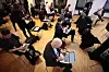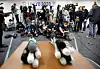 NORGE: Rengjøring av mikrofonen som pressen bruker mellom spørsmålene.Foto: Ørn E. Borgen / NTB scanpix
