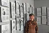 – Dette er fra 2024. Jeg står foran en utstilling av mine egne arbeider. Det er portretter av falne soldater, kvinnelige og mannlige helter som ofret livet sitt for Ukraina. Jeg planlegger å tegne alle kvinner som har dødd for Ukraina og utgi en bok med portretter og biografier.Foto: Fra Olena Bilozerskas private arkiv
