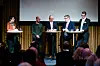 Mari Velsand, direktør i Medietilsynet, førte tillitsdebatten med flere av «the usual suspects»: NRKs etikkredaktør Per Arne Kalbakk, VG-redaktør Gard Steiro, Dagsavisen-redaktør Eirik Hoff Lysholm, og medieforsker Hallvard Moe. Foto: Eskil Wie Furunes