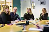 Programledere Invild Bryn og Petter Oulie-Hauge, vaktsjef Ann-Iren Finstad og redaksjonssjef Hanna Thorsen har redaksjonsmøte i Dagsrevyen, desember 2018. Foto: Kristine LindebøKristine Lindebo