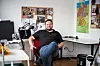 NRKs Roger Sevrin Bruland på blikkenslagerbedriften i Lviv.Foto: Andras D. Hajdu