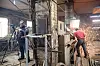 Til vanlig lager ansatte ved blikkenslagerbedriften smijernsprodukter, porter og sengebunner, men nå har de gått over til å lage spikermatter som blir brukt i kontrollposter rundt omkring i byen.Foto: Andras D. Hajdu