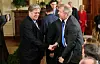 Kim Darroch (til venstre) gikk denne uken av som Storbritannias ambassadør til USA. Her hilser han på tidligere Trump-rådgiver Steve Bannnon. Foto: Carlos Barria / Reuters / NTB scanpix