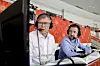 TV3-kommentatorene Daniel Høglund (til høyre) og Gunnar Pettersen i Aqua Dome i Kumamoto, Japan for et år siden. EM kommenterer duoen fra Oslo.